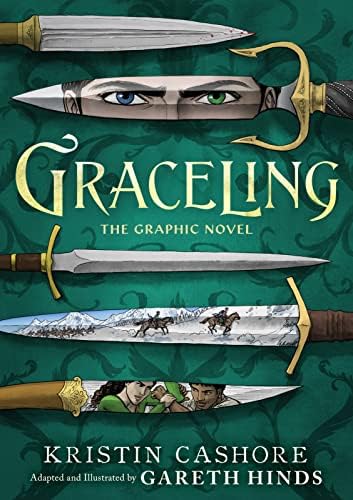 Straight Talk for Librarians: This is a graphic adaptation of the 2008 bestselling fantasy novel and it is masterfully done. The story holds up well without aging itself as it takes place in a fictional land with little technology. Illustrator and adaptor Gareth Hinds artwork is incredible, capturing the essence of the original story and leaving little out. The fight scenes, which are plenty thanks to the specific Graces of Katsa and Po, are particularly impressive, as are the way in which Hinds handles Katsa’s internal thoughts. A specific feature of Gracelings is their two-colored eyes, which are striking in the graphic version. The inclusion of different skin tones and hair types amongst the characters from different lands is particularly welcome in this updated version. Many students will be drawn to this exciting fantasy graphic novel and it may even draw some readers to the original series as well. A highly recommended purchase for middle school and high school libraries.